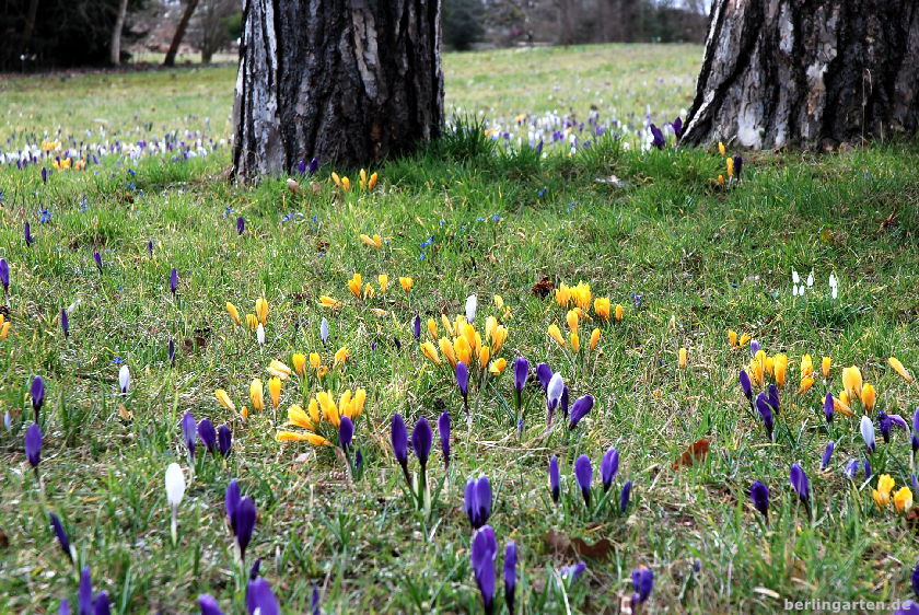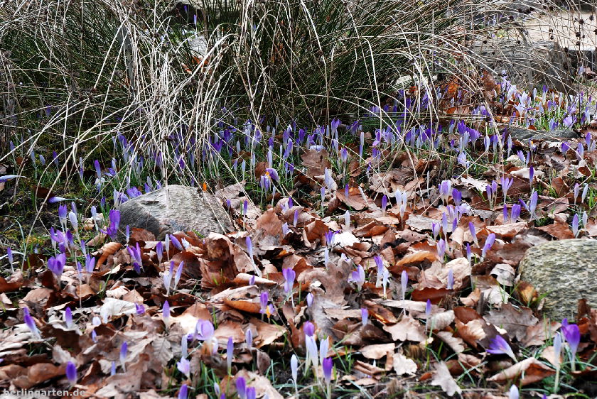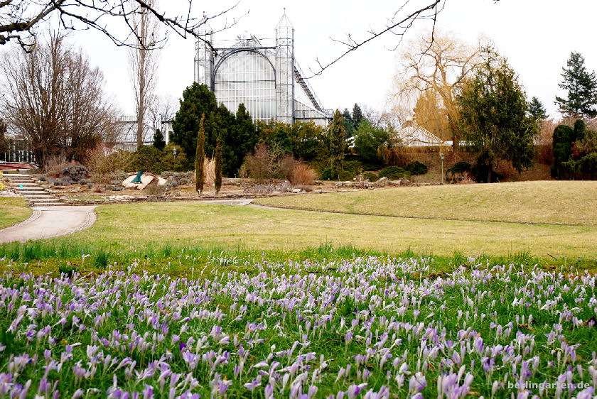 Fragst du dich, ob ich jetzt „irgendwie high“ bin? Ja, aber bei absolut klarem Verstand. Und erfüllt von wirklich großartigen Eindrücken auf dem so genannten Jahreszeitenpfad, der zu den jeweiligen Highlights der Saison führt. Ich danke den Botanikern und Gärtnern des Botanischen Gartens, dass sie mich – mitten in Berlin – das ganze Jahr über teilhaben lassen an den Gartenschätzen dieses Planeten. Der Sachverstand, die Professionalität, der Fleiß, dieses riesige Areal bei Wind und Wetter so top in shape zu halten und in einer fachkundigen Mischung aus der Forschung genügenden und zeitgemäßen Gestaltungen zu präsentieren, begeistern mich. Und ich lerne ständig dazu. So wußte ich zum Beispiel, dass es Herbstkrokusse gibt, habe selbst welche im Garten. Nun habe ich andersherum Frühlings-Zeitlose kennen gelernt. Hübsche kleine Gesellen in gelacktem Violett. Die müssten sich für unsere Privatgärten doch auch irgendwo auftreiben lassen. Der Jagdtrieb ist geweckt.