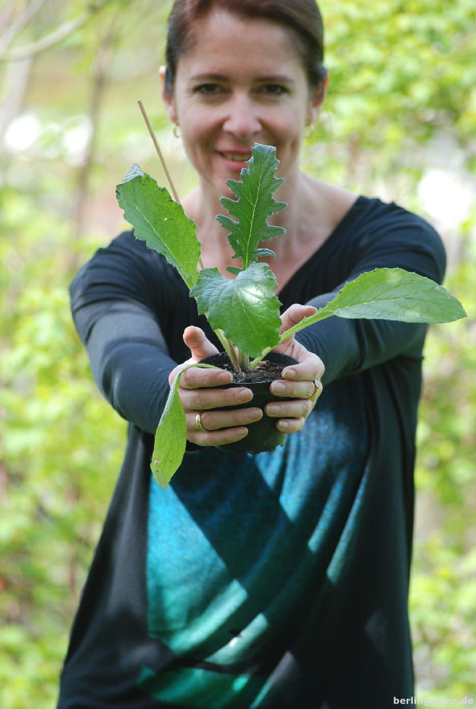 Den Rücken zu krümmen gilt es auch beim Legen der Kartoffeln und Pflanzen der Artischocken-Setzlinge. Besonders gern bücke ich mich jetzt nach den Salaten. Geschützt im Frühbeetkasten sind sie zu wahren Riesen gewachsen und werden nun täglich in die Salatschüssel hüpfen.