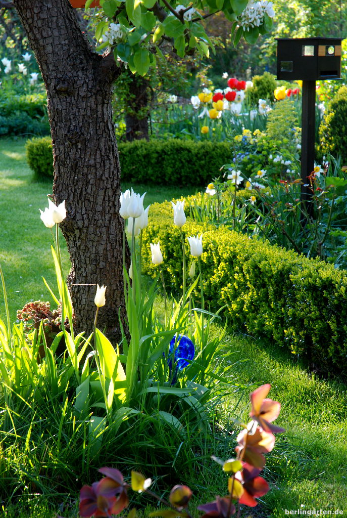 Ein schöner Garten! Herrlich, wie deine Tulpen über dem Grün schweben.