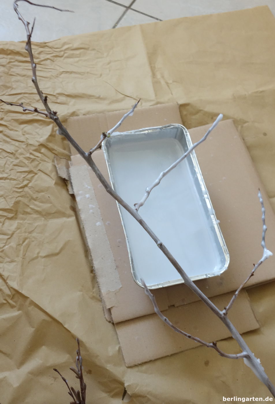 - Achtung Tropfen – Zweige werden in Wachs getunkt