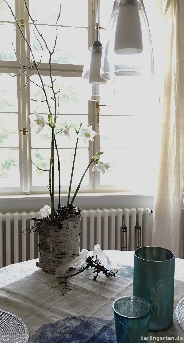 Dir auch einen schönen Montag, liebe Birgitt! Freut mich, dass dir das Arrangement gefällt, ich finde es auch total passend zur Jahreszeit. Meine Birkenrinde ist tatsächlich ziemlich groß, sodass ich der Eucharis noch die Zweige zur Seite stellen musste, sie hätten sonst verloren gewirkt. Bei deinen Rindenstücken ist so toll, dass du aus mehreren gleich eine Gruppe gestalten kannst. Da hast du viel Glück gehabt, sie zu ergattern.