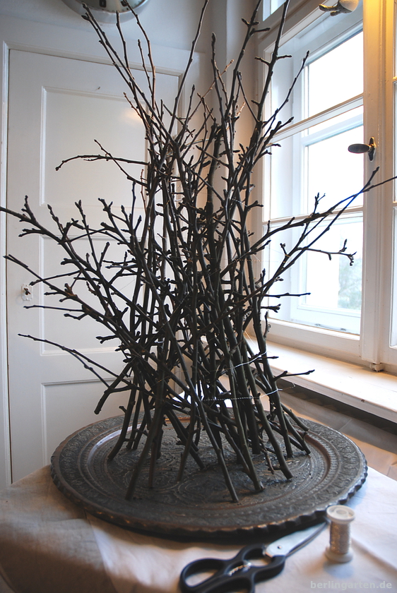 - 1. Schritt: Zweige mit Silberdraht zusammenbinden