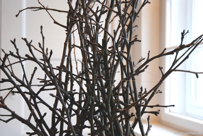 Ein Vorzug der Zweige ist eindeutig die Standfestigkeit. Die Chance also, einen richtig großen, beeindruckenden Strauß ohne Vase zu realisieren. (Dieser ist 80 cm hoch. Wow.)