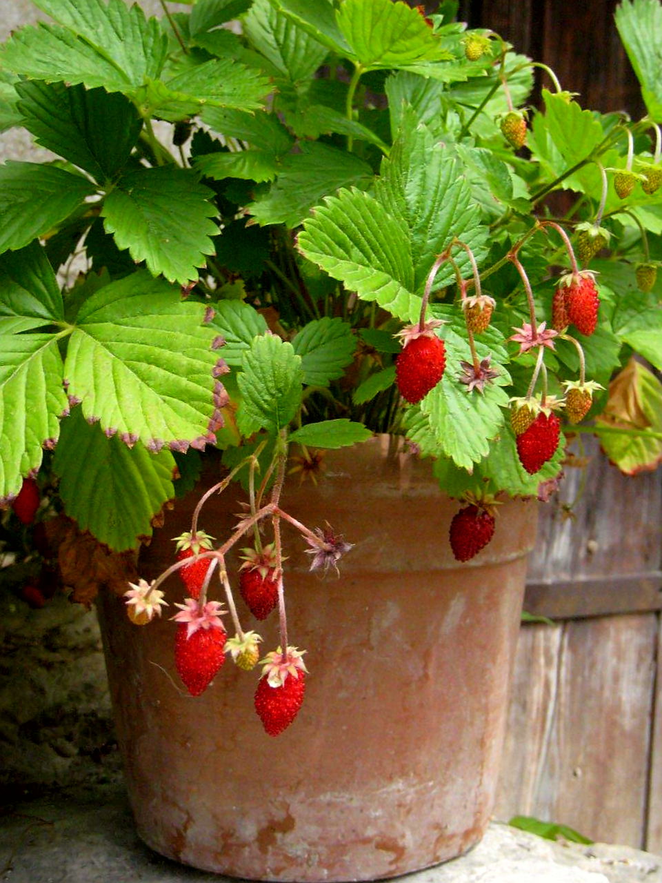 Erdbeeren mögen es sonnig bis halbschattig. Im Winter dürfen die Gefäße nicht zu sehr der Nässe ausgesetzt sein.