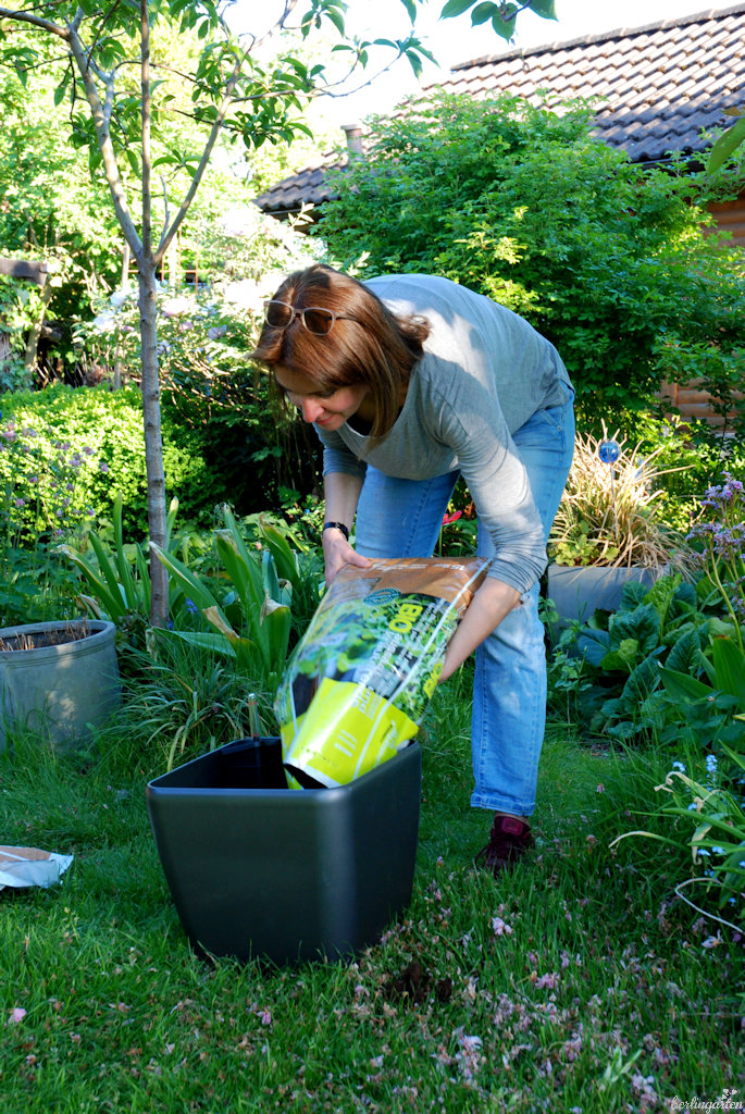 - Kübel füllen – ich verwende Kräutererde