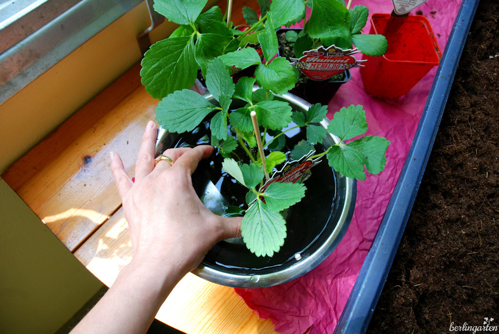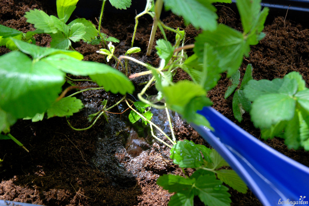 Die typischen Erdbeer- und Kräutertöpfe mit den zahlreichen „Pflanz-Ausbuchtungen“ sind übrigens nicht so toll für Erdbeeren. Den Wurzeln ist es dort zu eng.