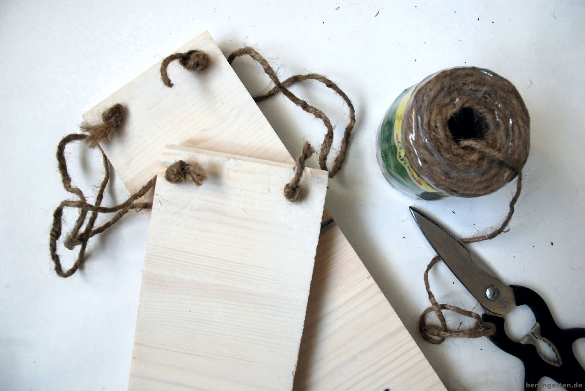 Als Aufhängung gefällt mir persönlich schlichte Juteschnur, mit der ich auch Gehölze zähme und auseinanderfallende Stauden aufbinde. Natürlich sind der Fantasie aber keine Grenzen gesetzt, der Haken freut sich auch über Samt- und Leinenbänder.