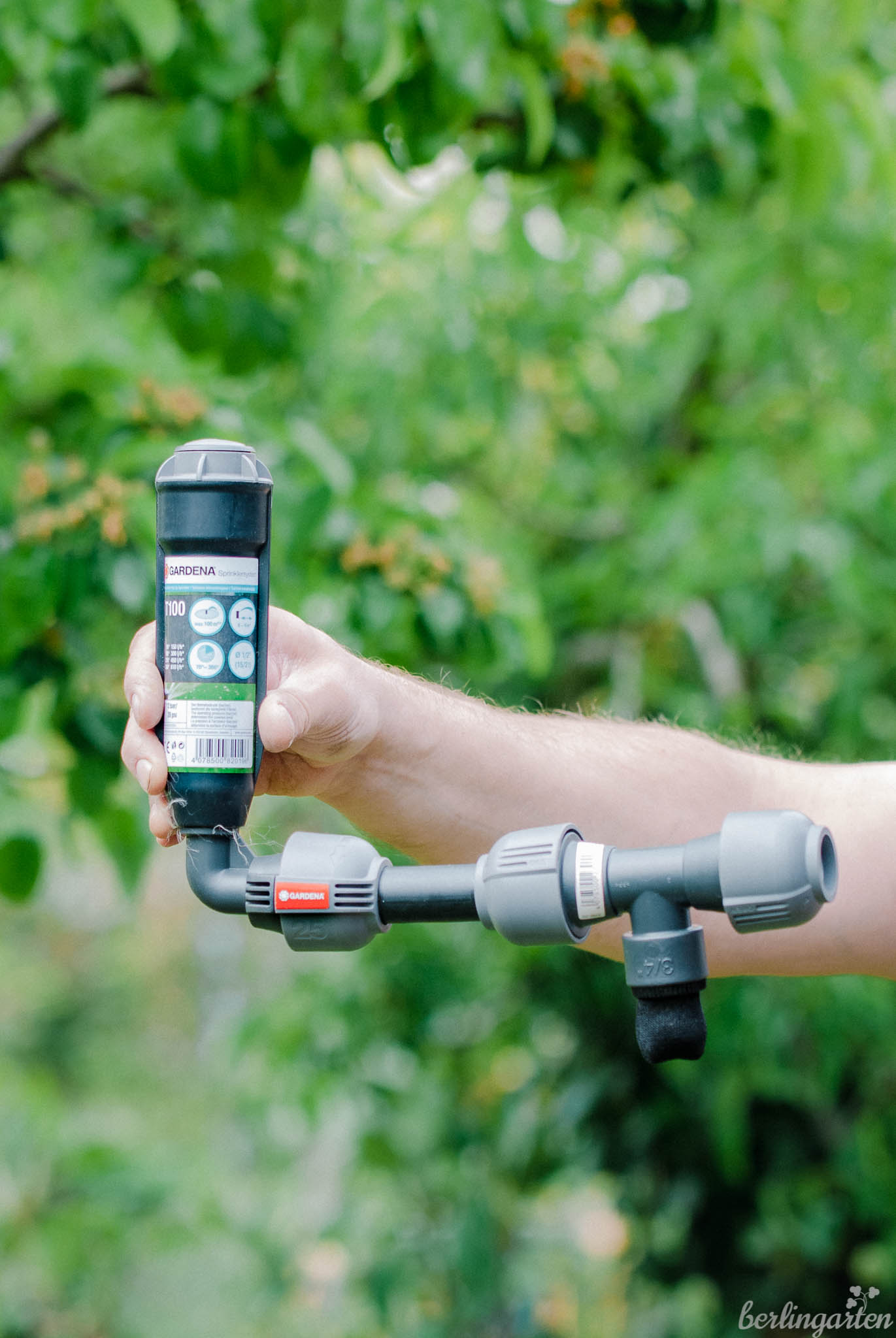 - Das ist der Turbinen-Versenkregner mit Entwässerungsventil am T-Stück