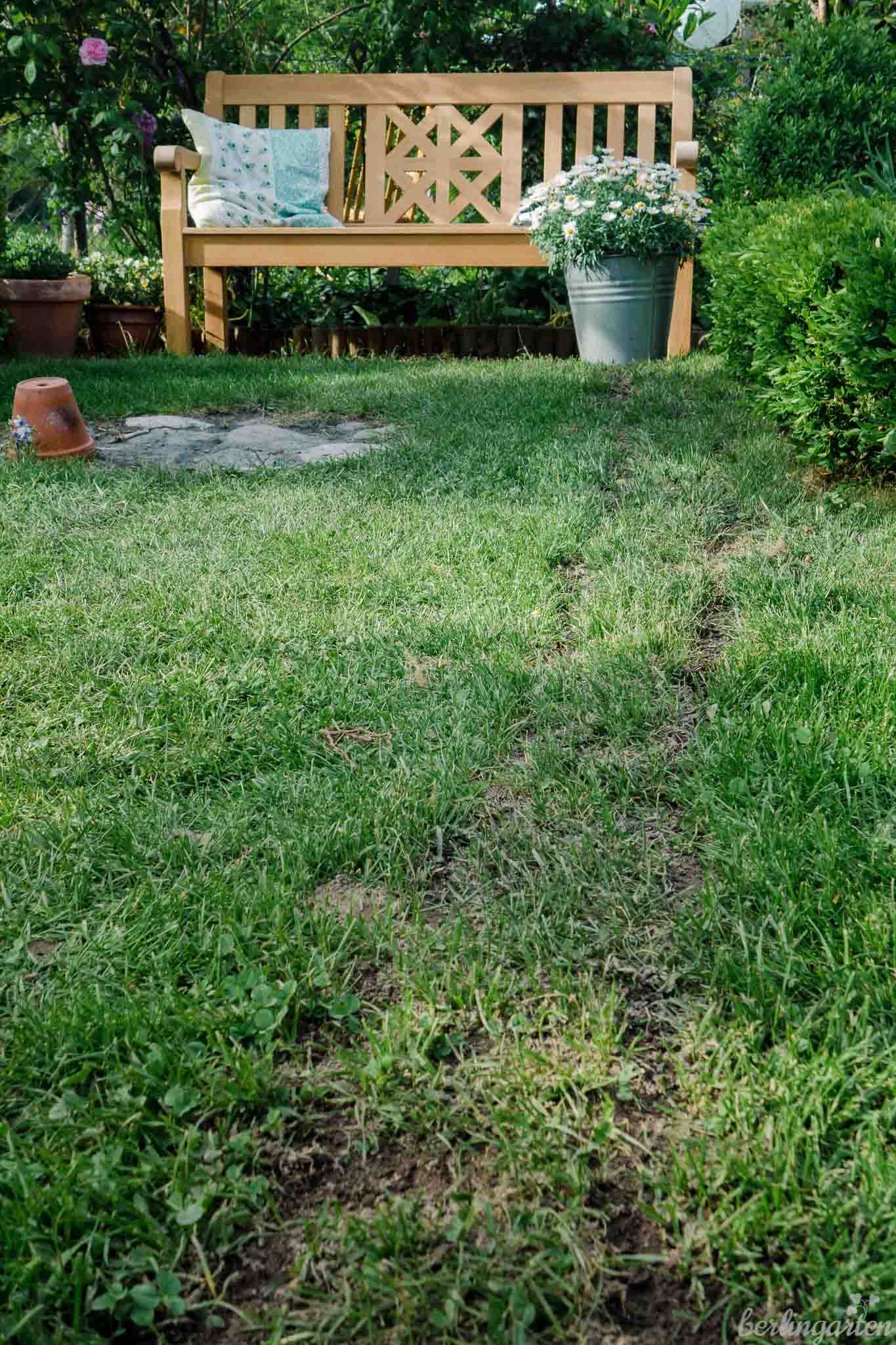 - Keine Sorge um den Rasen, er wächst sofort nach, vor allem, da die Rasensamen ja regelmäßig gewässert werden
