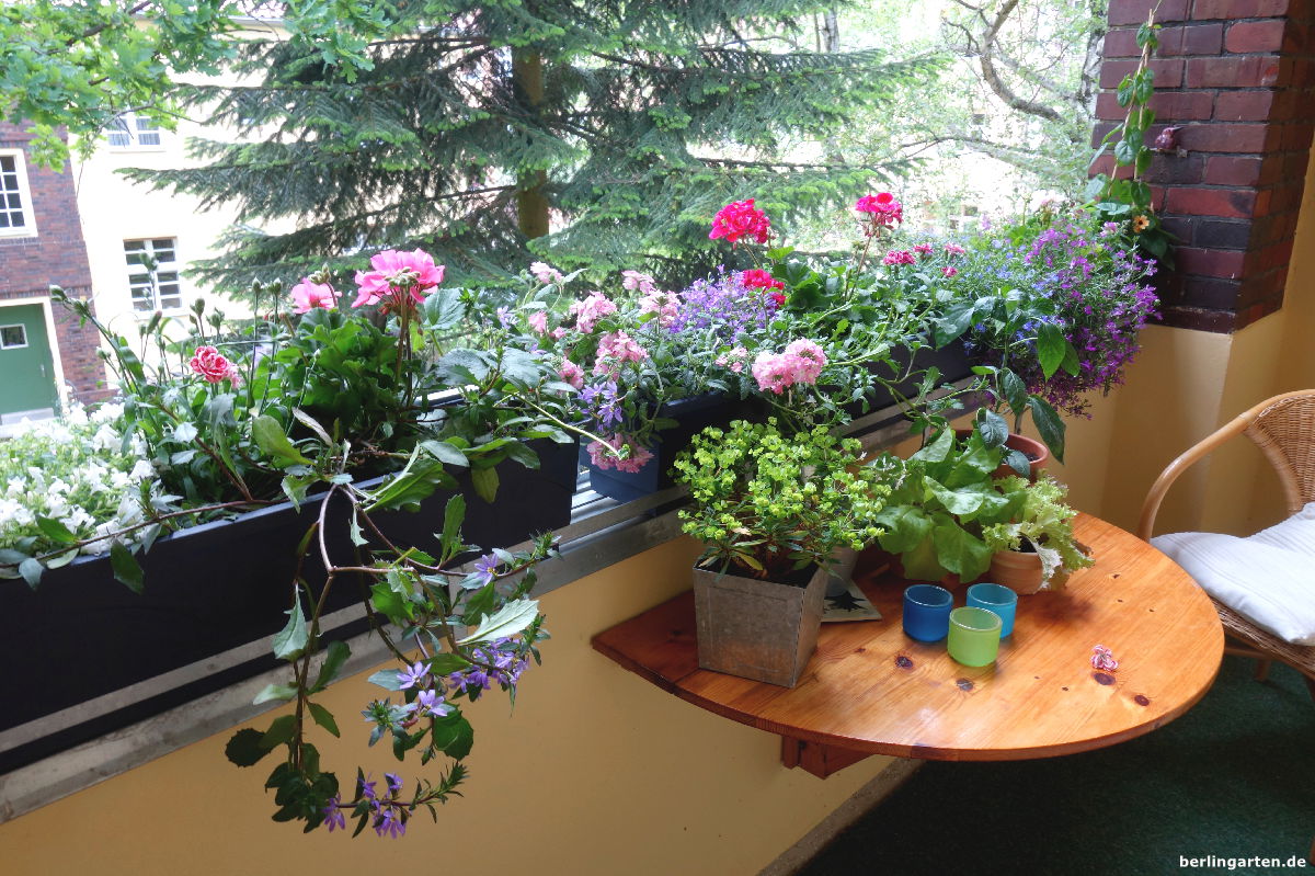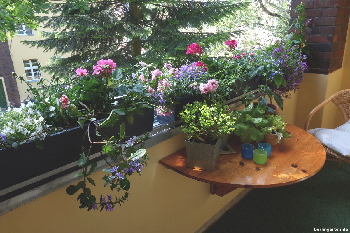 Mitten in Berlin ein Hauch ländlicher Idylle. Ich liebe meinen abwechslungsreichen Blumen- und Naschbalkon.