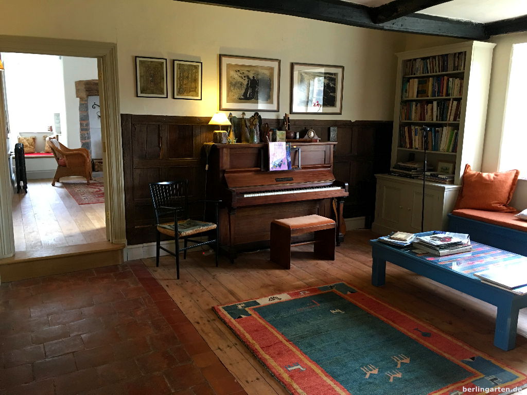 Über Hestercombe, viele andere Gartenhighlights sowie die Sehenswürdigkeiten Somersets kann der B&B-Gast in Sukis großer Bibliothek schmökern. Während im Sitting Room ein Feuer im Kamin brennt, blättern wir uns durch die dicken Bildbände, spielen Skat und Scrabble. In der Gästemappe fordern Suki, ihr Mann Rich und Tochter Rachel sogar dazu auf, ‚to play the piano‘. Aber soweit wollen wir es mit unseren rudimentären Klavierkünsten dann doch nicht treiben. Jedenfalls geht es familiär zu, ich bin animiert, viel englisch zu sprechen, genau, wie ich es mir vorgenommen hatte.