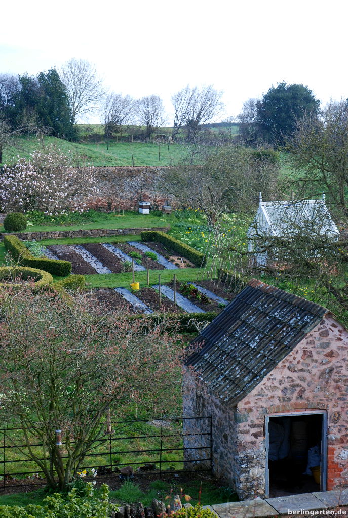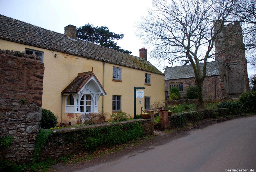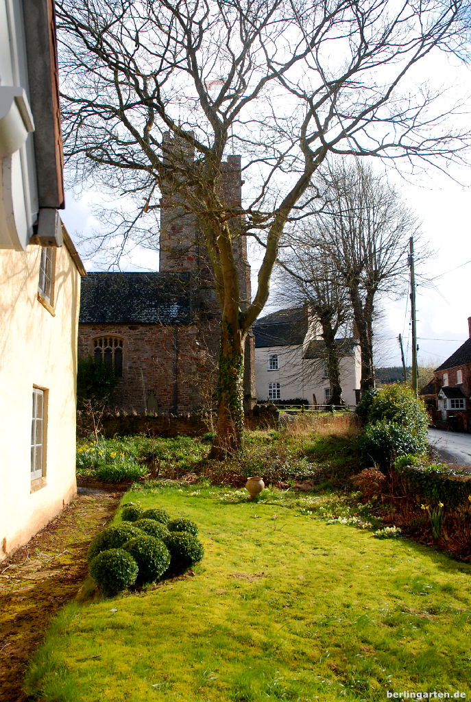 Der Garten ist sehr schön angelegt, hat eine klare Struktur und fügt sich optimal ins Bild mit dem Farmhouse und der direkt daneben liegenden Kirche. Als wir das erste Mal die enge, kurvige Straße passieren und einen Blick auf die in der Abendsonne liegende Anlage erhaschen, bin ich glücklich. Over Stowey ist ein winziges Nest an den Quantock Hills, nah der Küste, ein guter Ausgangspunkt für Wanderungen und Ausflüge in den Exmoor Nationalpark oder einige schöne Gartenanlagen. Besonders dicht liegt Hestercombe Garden, furios designed von Edwin Lutyens und Gertrude Jekyll.