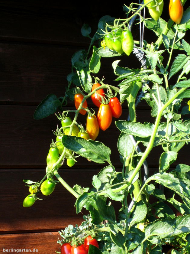 Bei mir stehen sie z.T. im Osten mit Sonne nur bis ca. 11.oo Uhr – das klappt super. Dort sind sie absolut vor Regen geschützt und das ist bei Tomaten das Wichtigste überhaupt.