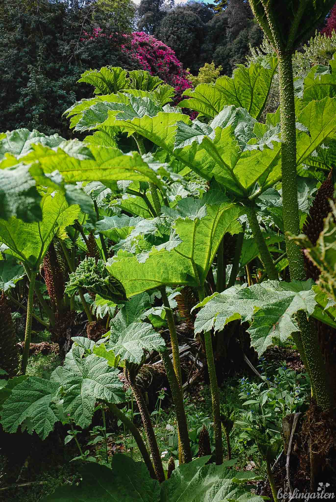 - Wer aus dem Vollen schöpfen will, gönnt sich und seinem Garten das Mammutblatt (Gunnera). Achtung: Es braucht Winterschutz!