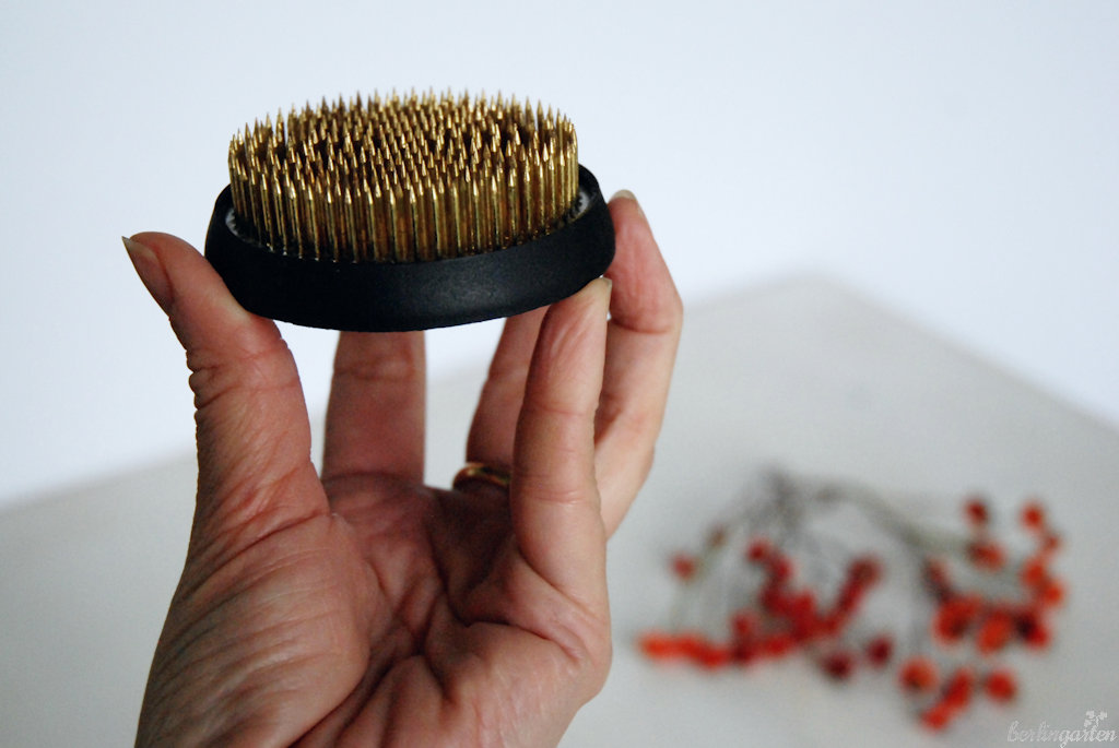- Ein Kenzan ist unverzichtbar, um Blütenstielen Halt zu geben