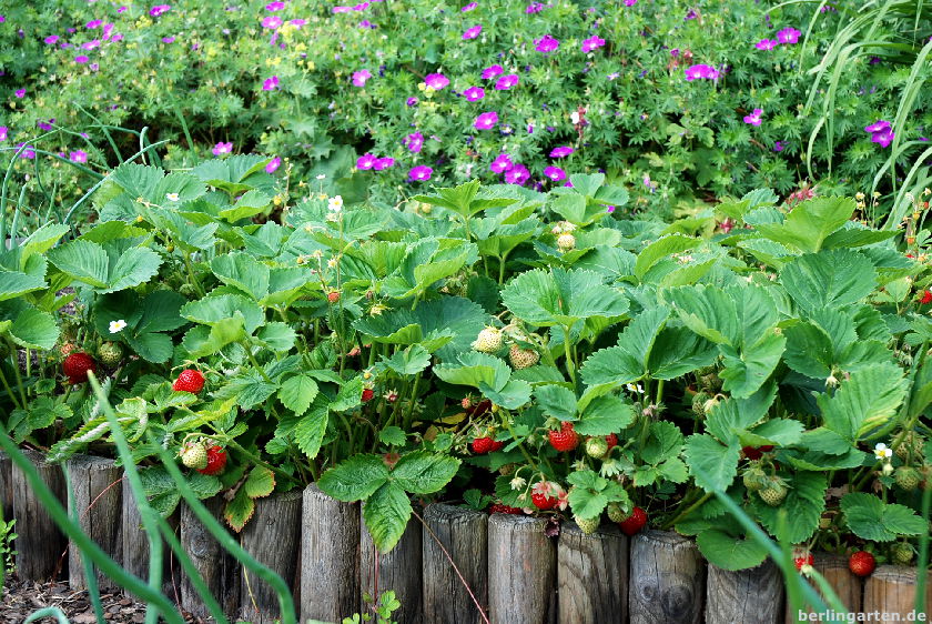 Ich habe heute morgen schon wieder Erdbeeren naschen dürfen. Vielleicht beeilen sie sich so, weil sie wissen, dass sie nach klassischer Gärtnerregel längst hätten gerodet sein müssen. Sie stehen unverändert platziert und unverändert tragfreudig bestimmt seit vier Jahren dort (Mara du Bois). Deine sind sicher auch bald soweit, liebe Sisah!