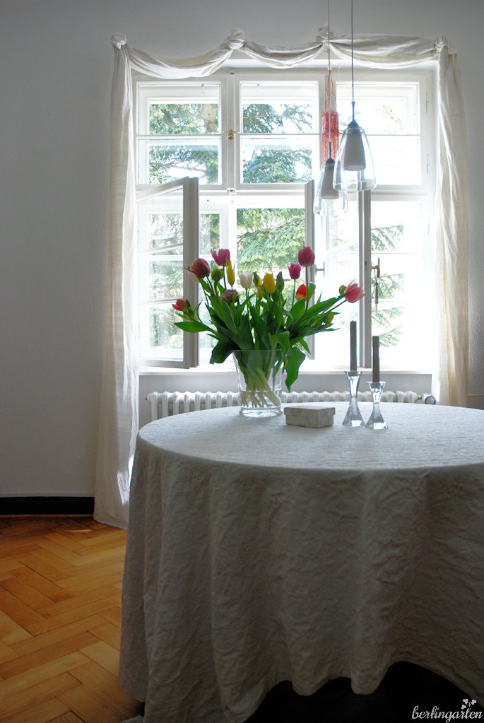 Annemiekes Tipp: Ganz unterschiedliche Tulpen zusammenstellen. Durch die Mischung von kürzeren und langen Tulpen entsteht in der Vase ein Look wie auf den Gemälden der alten niederländischen Meister. Und die Tulpen in dem Stadium pflücken, in dem an der Knospe gerade die Farbe der Blüten zu erkennen ist, dann halten die Blumen lange.