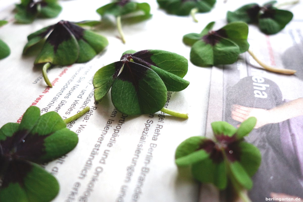 meine gepressten Glückskleeblätter sind fast alle und gerade jetzt gibt es genügend, um Nachschub zu machen,