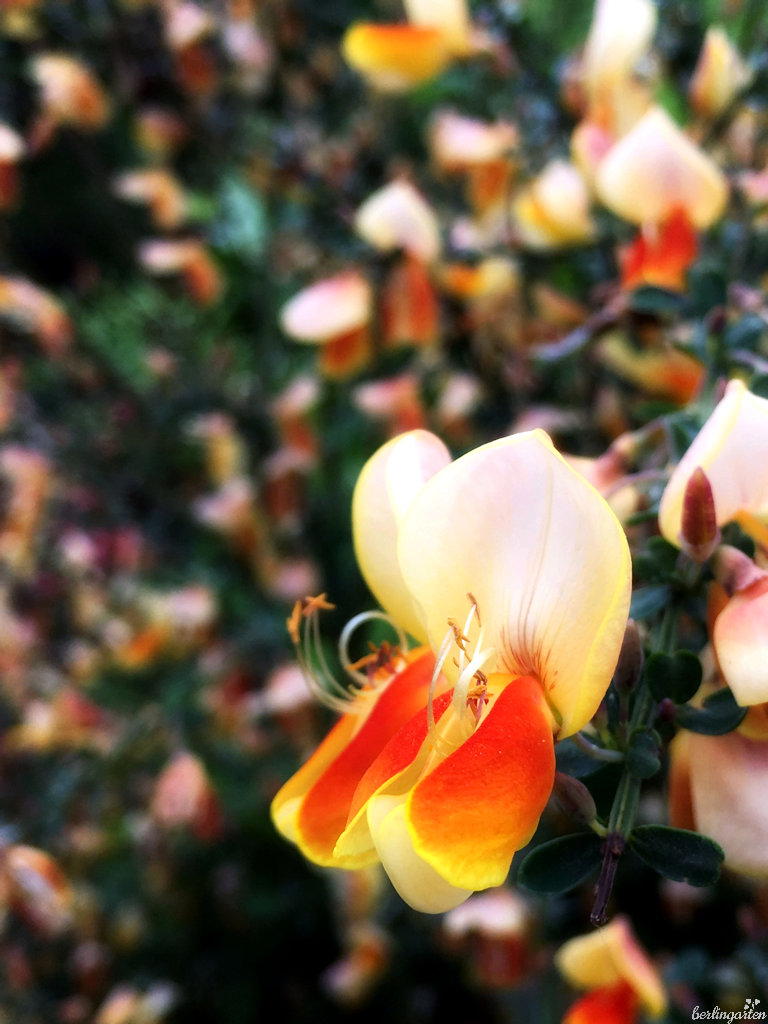 Täglich komme ich an einem Ginstergarten vorbei und ich muss dir jetzt mal diese tollen Sträucher zeigen! Ich bin wirklich verzaubert von der Pracht samt herrlichem Duft. Jedes der Exemplare ist von Anfang Mai bis in den Juni hinein von einer riesigen Zahl leuchtender Schmetterlingsblüten besetzt. Ich kannte ihn unter dem Namen Besenginster, finde es aber nur korrekt, dass er jetzt in der Regel als Edelginster gehandelt wird.