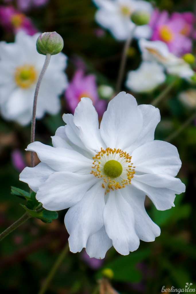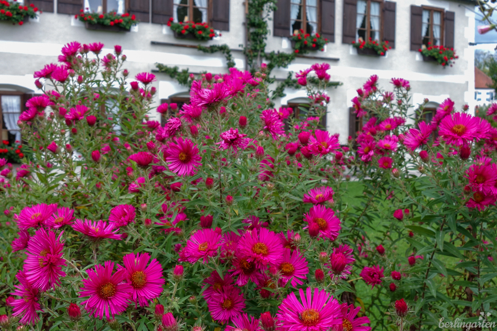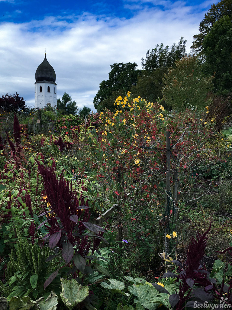 Fachkundig geführt von Steffi ging es mit dem Schiff von Pries aus zunächst Richtung Fraueninsel. Das Wetter war herbstlich-freundlich und wir freuten uns auf Kloster Frauenwörth und die bunten Bauerngärten der autofreien, von rund 300 Menschen bewohnten Insel. Wir wurden nicht enttäuscht. Dahlien, Astern und andere Herbstblüher standen in voller Pracht. Insbesondere für Herbstanemonen schienen Boden und Klima perfekt zu sein: In solcher Üppigkeit habe ich die Stauden noch nie gesehen.