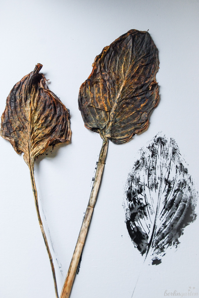 Die Blätter haben die perfekte Drucktextur, wenn sie nicht mehr ganz knackig und störrisch, aber auch noch nicht trocken und zerbrechlich sind. Welke Blätter sind perfekt.