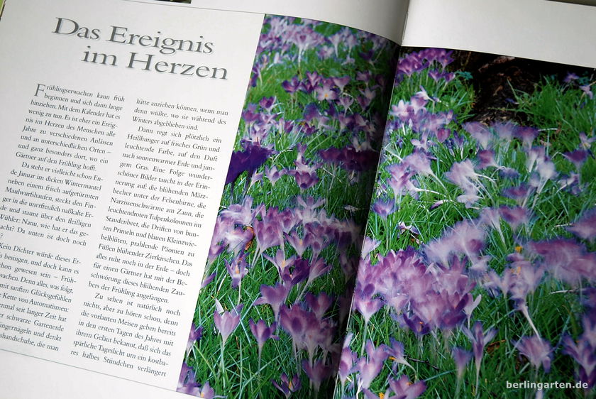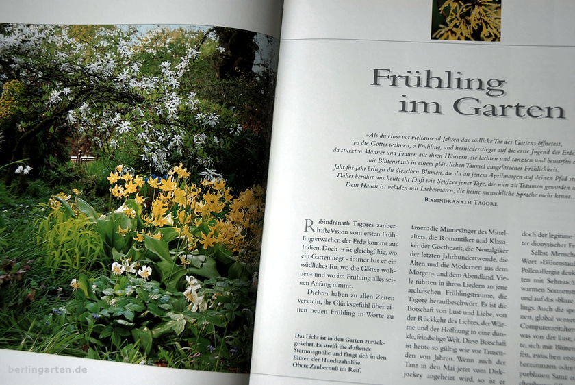 Titel„Frühlingserwachen kann früh beginnen und sich dann lange hinziehen. Mit dem Kalender hat es wenig zu tun. Es ist eher ein Ereignis im Herzen des Menschen alle Jahre zu verschiedenen Anlässen und an unterschiedlichen Orten – und ganz besonders dort, wo ein Gärtner auf den Frühling hofft.“