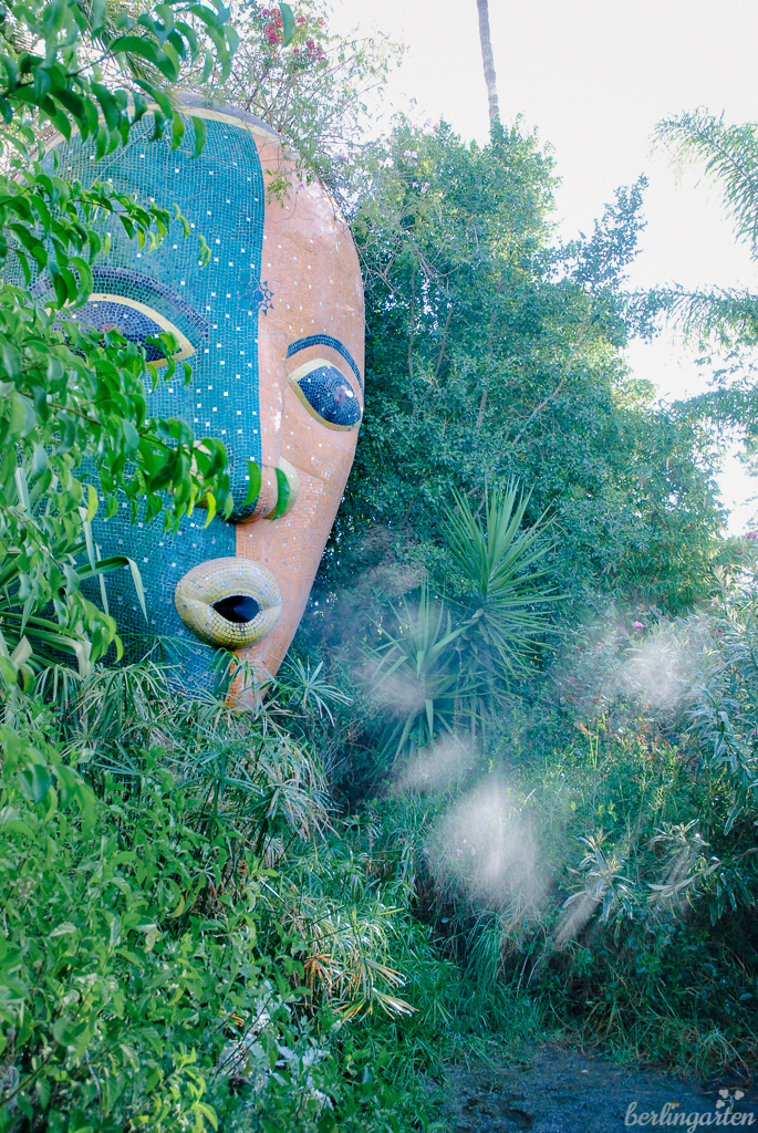 - Der vier Meter hohe Mosaikkopf versprücht alle paar Minuten seinen Dampf und spendet Erfrischung