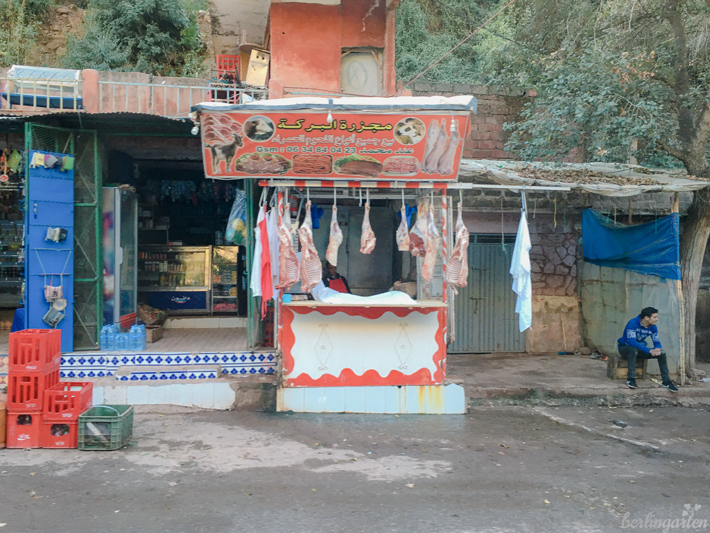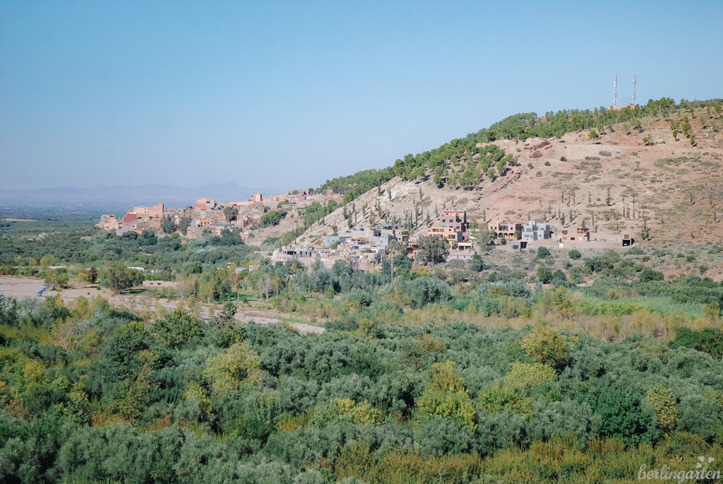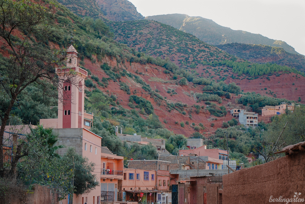 Auf der Fahrt bis ins Dorf Setti Fatma schmiegen sich die rosabraunen Ortschaften an die Hänge, oftmals erkennt man sie kaum. Die Familien leben hier in sehr schlichten Häusern ohne jeglichen Komfort, oftmals unter einem Dach mit ihren Tieren. Alles ist offen, Heizungen für die empfindlich kalten Winter gibt es nicht – dafür eine große Gastfreundschaft und den allgegenwärtigen Minztee mit viel Zucker.