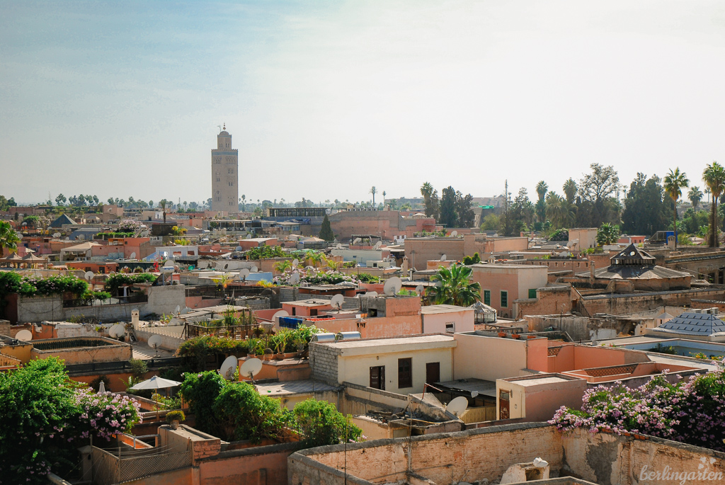 - Blick über Marrakesch Richtung Koutoubija-Minarett