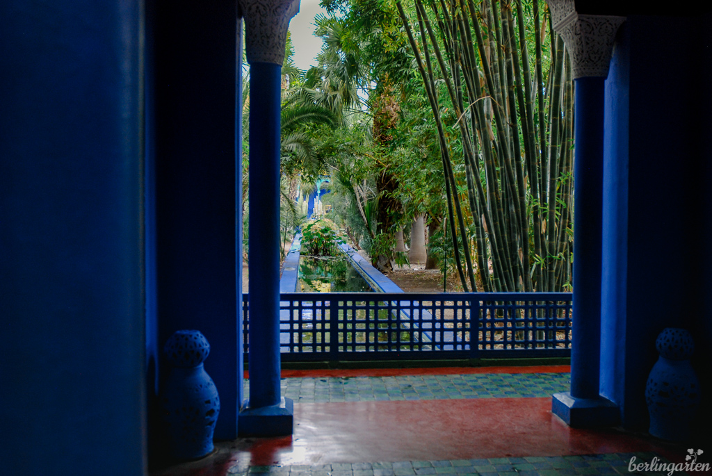 - Mehr Majorelle-Blau geht nicht: Der Kanal ist üppig umstanden und schafft einen fast dschungelhaften Charakter