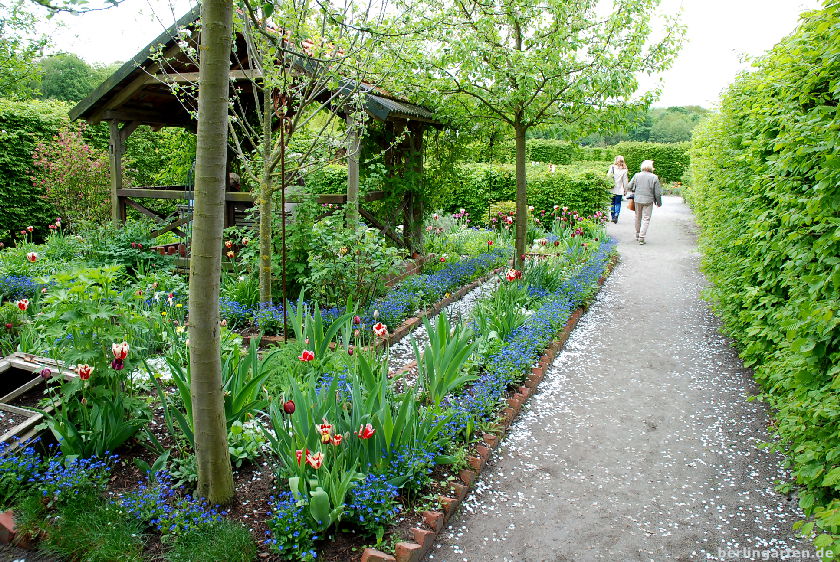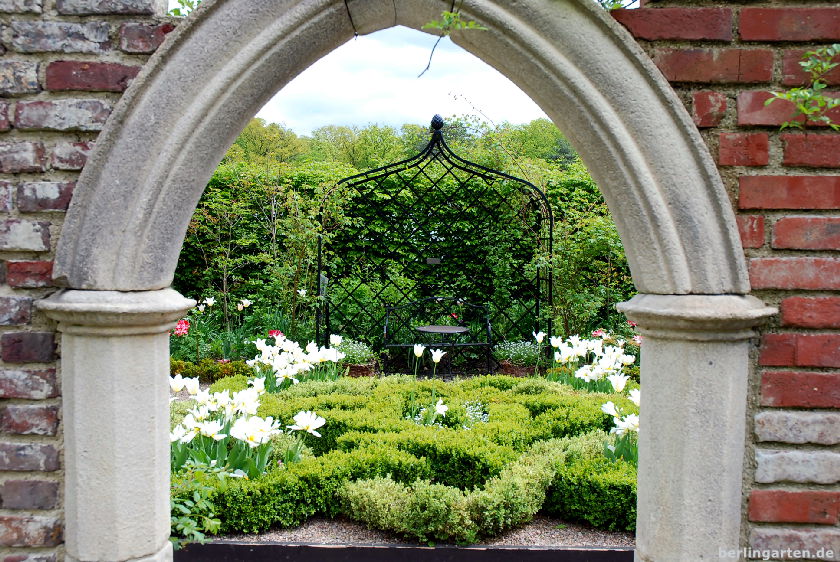 Was macht die Anlage nun aber aus? Faszinierend fand ich die Mischung aus Gärten, die überdauern, und saisonalen und experimentellen Gartenkonzepten, die jedes Jahr neu von namhaften Gartenkünstlern umgesetzt werden. Da gibt es einerseits die Anlagen direkt ums Schloss, dann den deutschlandweit größten und vielfältigsten Küchengarten sowie das Rosarium 2000+, ein lebendiges Rosenmuseum. Und dann die durch Hecken abgetrennten Gartenräume, in denen du Gartentrends oder Künstlerisches kennen lernen kann. Interessant: In diesem Sommer ist Urbangardening ein wichtiges Thema. Auch Prinzessinnengärtner aus Berlin-Kreuzberg sind dabei. Ich bin gespannt auf die Mischung von Bad Essen und städtischen Konzepten!