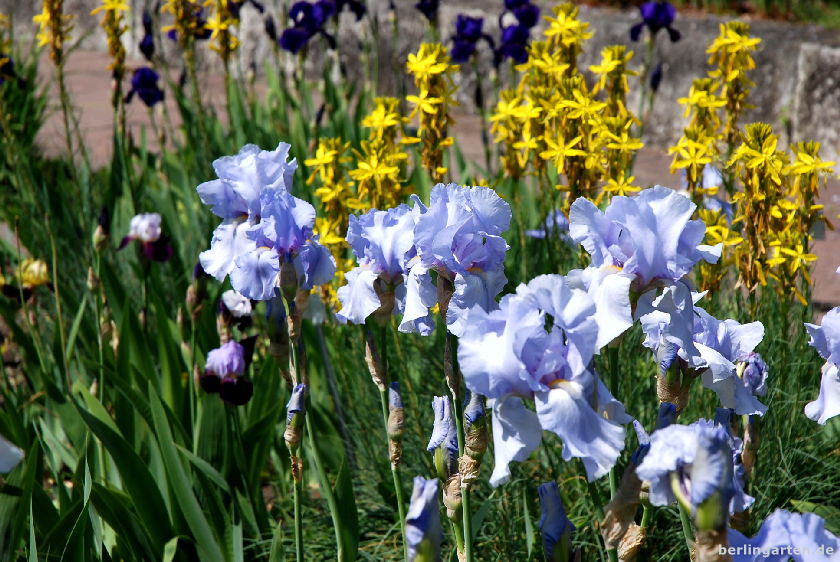 - Ungewöhnlich: Junkerlilie Asphodeline lutea mit Iris barbata.