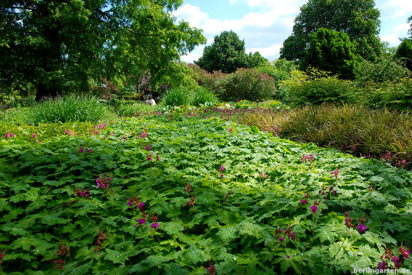 Wenn du hier bei berlingarten schon länger mitliest, weißt du, wie sehr ich Flächenpflanzungen liebe. Die gibt es hier vielfältig zu bestaunen: Selbst unter riesigen Eichen tummeln sich Geraniumsorten, als ob es kein angenehmeres Plätzchen gäbe – ich kam aus dem Freuen gar nicht wieder heraus.