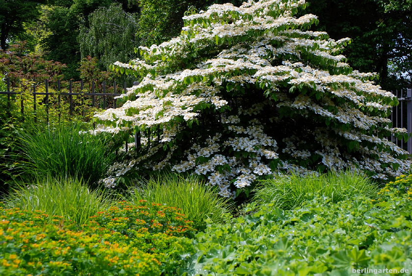 - Hartriegel in Kombination mit Wolfsmilch und Frauenmantel.