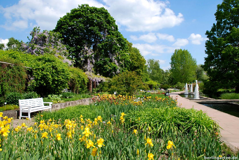 1937-40 legte er hier mit Hermann Mattern Schau- und Lehrgärten an. Im Zweiten Weltkrieg weitgehend zerstört, wurde die Gartenanlage 2001 – genau wie der Foerster-Garten in Potsdam-Bornim – anlässlich der Bundesgartenschau umfassend restauriert. Auch die anderen Teile der Freundschaftsinsel wurden umgestaltet. Mehr als 1.000 verschiedene Staudensorten gibt es zu bewundern und die über 250 Schwertliliensorten im Wassergarten standen bei meinem Besuch in voller Blüte. Großer Dank gilt dem emsigen Gärtner-Team.