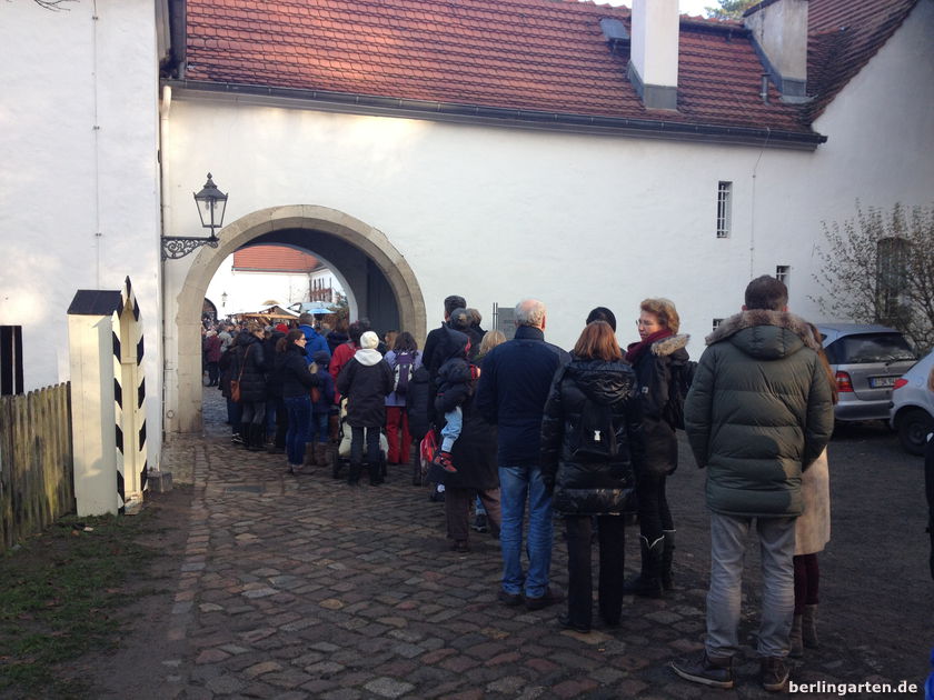 Als wir uns dann aber dem Programmpunkt „Weihnachtsmarktbesuch“ näherten, merkten wir mal wieder, was es heißt, immer noch in einer Millionenmetropole unterwegs zu sein. Tausende auf dem Weg zum laut Prospekt „Märchenhaften Weihnachtsmarkt“ im „zauberhaften Ambiente“ des Jagdschlosses Grunewald, Berlins ältestem Schlossbau (1542), direkt gelegen am Ufer des Grunewaldsees.