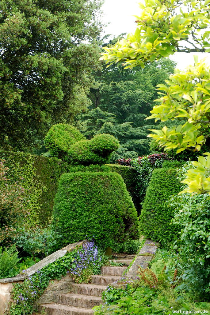 Der Vorteil der Unterteilung in verschiedene Gartenräume ist neben der Handhabbarmachung eines Geländes das Vereinen ganz unterschiedlicher Stile in einem Garten. Die geschnittenen Hecken mit den Topiari erinnern an die italienischen Renaissancegärten des 16. Jahrhunderts – sieh mal die entzückenden Vögel. Die Hänge und Höhenunterschiede nutzte Johnston zu Gärten, die den Besucher in die unberührte Bergwelt Chinas entführen. In wieder anderen wie The Wilderness denkst du: So müssen die Wiesen Englands ausgesehen haben, als noch Platz ohne Ende war.