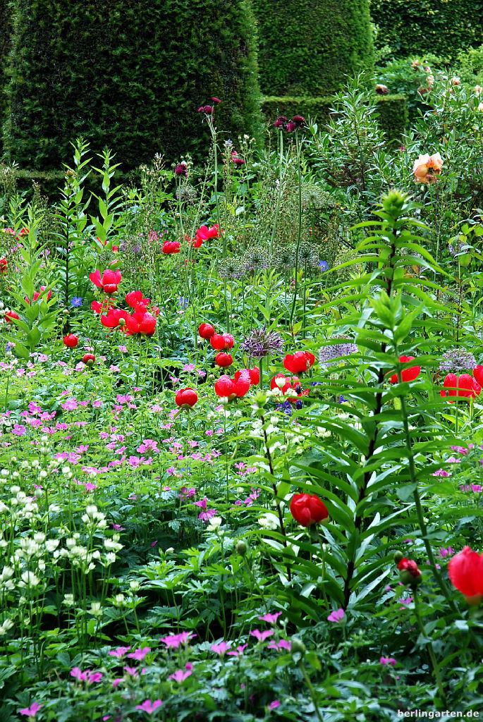 Die umliegende Landschaft wird im Stil der Landschaftsgärten des 18. Jahrhunderts eingebunden, inklusive weidender Schäfchen – du lässt einen nordamerikanisch anmutenden Präriegarten hinter dir und wähnst dich plötzlich in einem William Turner-Gemälde. Und die Staudenbeete sind in der Tradition der englischen Cottage-Gärten angelegt – aber deutlich aufgewertet durch bis dato unbekannte Pflanzen oder ungewöhnliche Farbkombinationen. Berühmt sind die Red Borders, die diese schwierige Farbe gekonnt kombinieren und wahrlich hot sind. Als Kontrastprogramm kannst du in den stark reduzierten Gärten wie Great Lown oder Long Walk wieder abkühlen. Insgesamt gibt es 30 Gärten, die du bestaunen kannst.