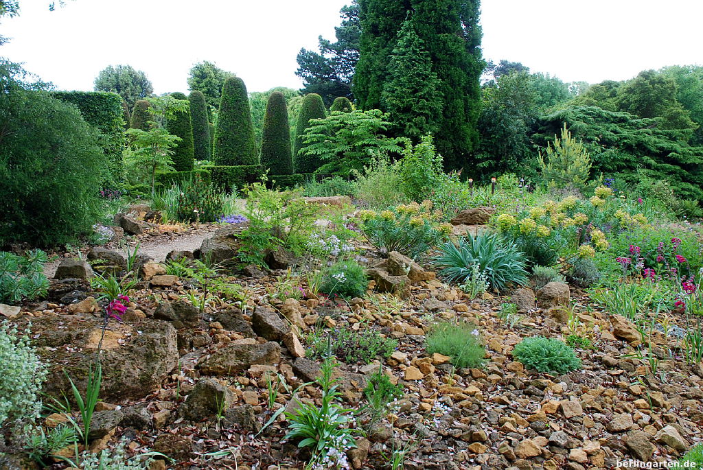 - Der Pillar Garden mit den Eibensäulen