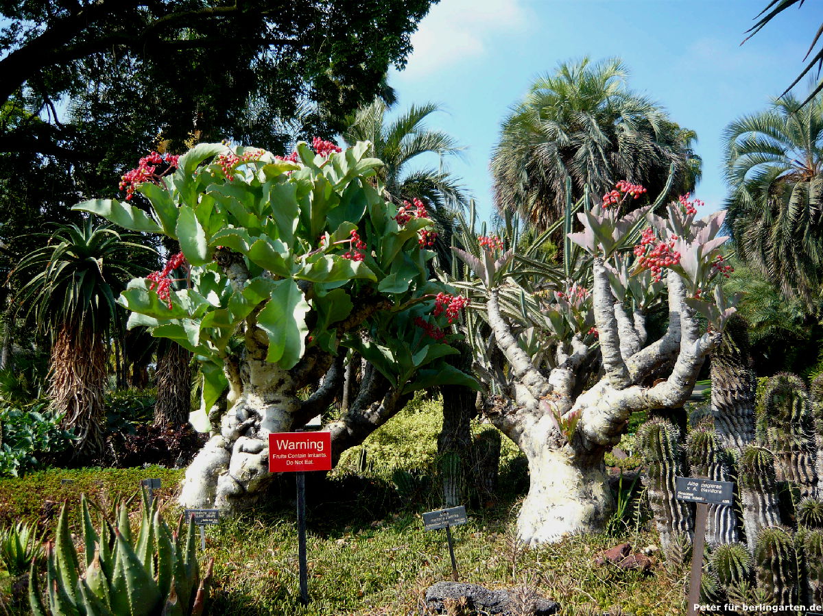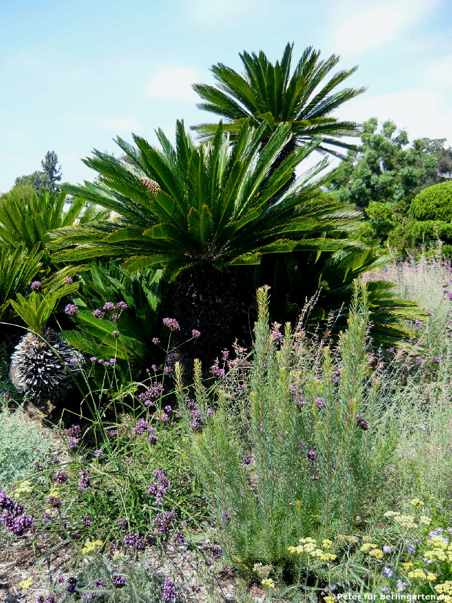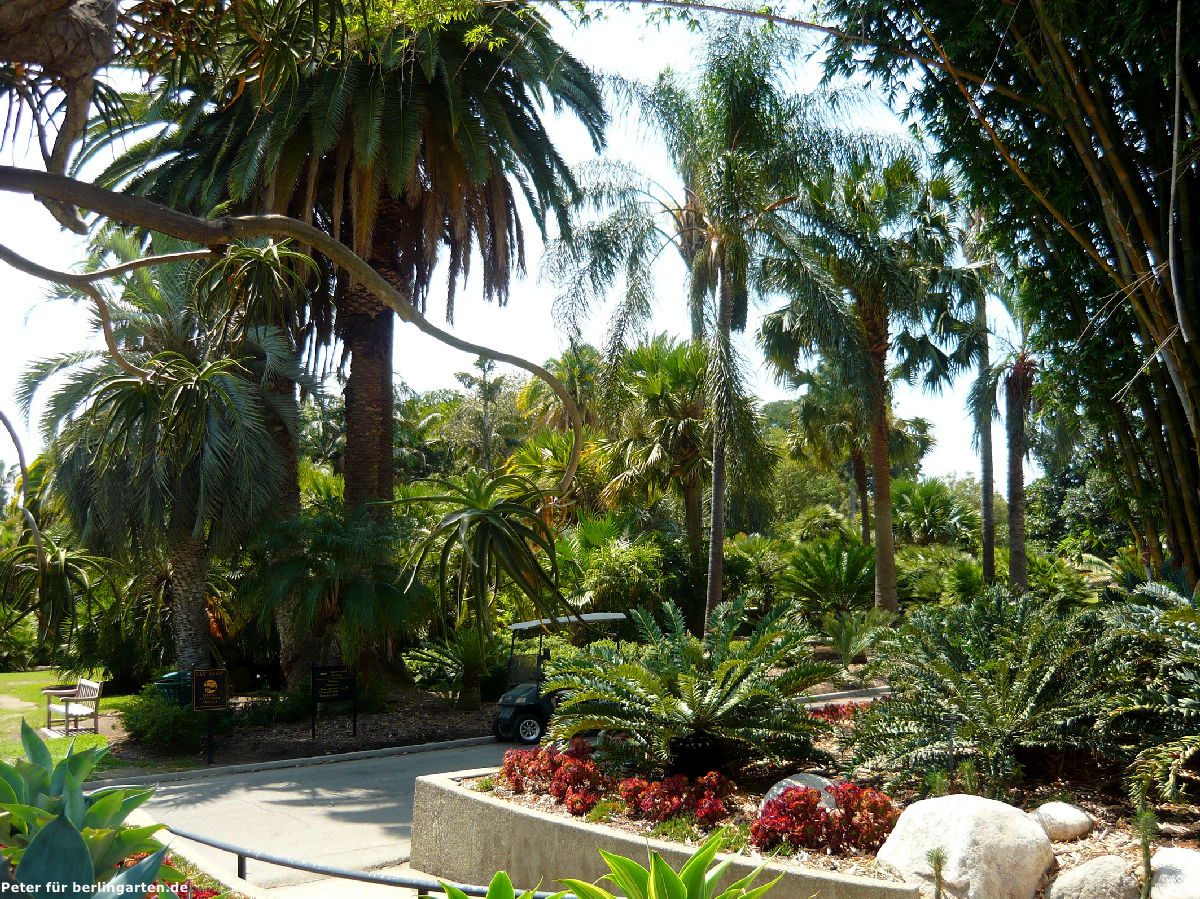 Gegenüber dem Desert Garden befindet sich der ebenfalls ausgedehnte Palm Garden (Palmengarten), an den sich direkt Jungle Garden (Dschungelgarten), Subtropical Garden (Subtropischer Garten) und Australian Garden (Australischer Garten) anschließen. Ihre Bepflanzung hat im südkalifornischen Klima zwar prinzipiell einen „Heimvorteil“ und gedeiht prächtig. Allerdings dezimierte 1913 einer der regional seltenen harten Winter allein den Palmenbestand um die Hälfte. Denn gerade diese Pflanzengattung gehörte ursprünglich nicht in die Landschaft des amerikanischen Südwestens, sie wurden erst von spanischen Kolonisten hier heimisch gemacht.