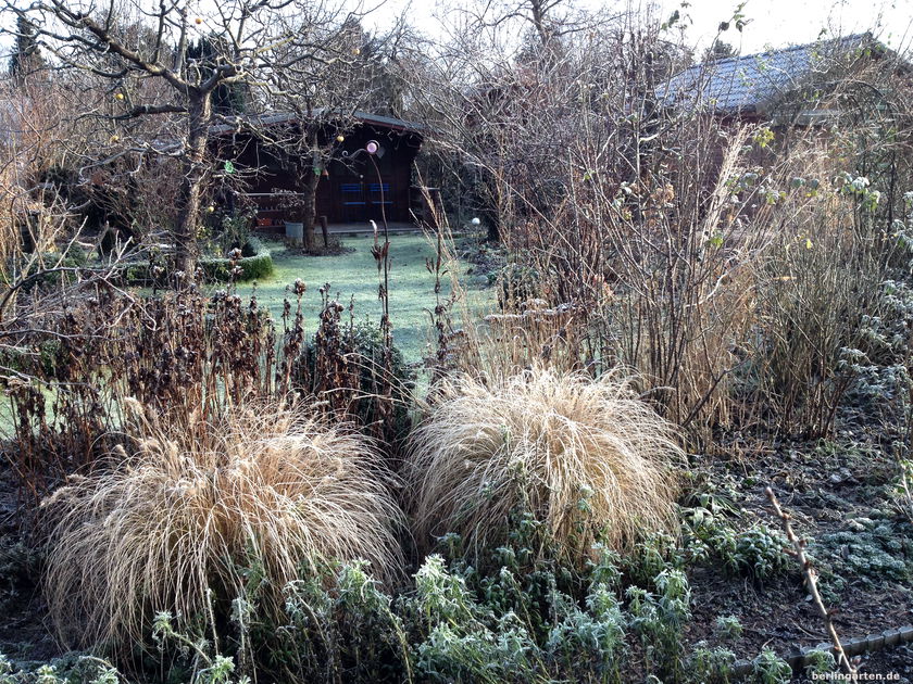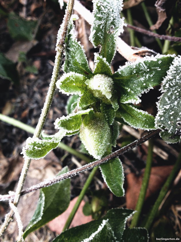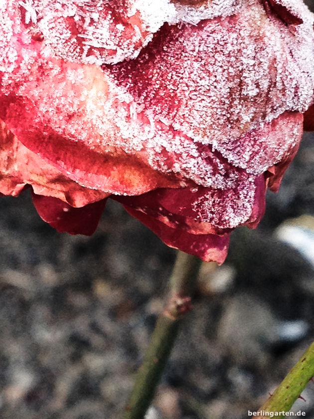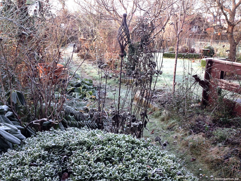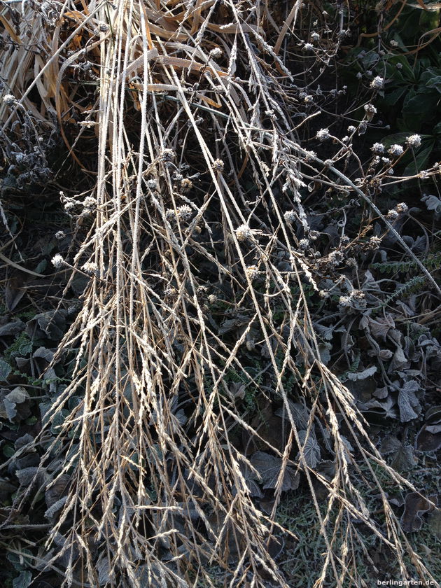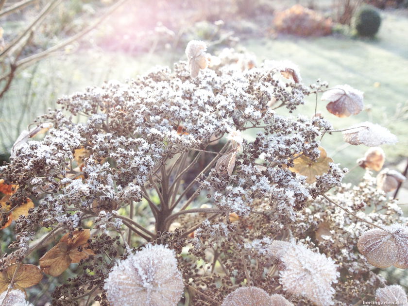 Klirrend kalter Morgen. Sonnenschein. Wind. Eine in Reif gehüllte Zauberwelt direkt vor der Tür.