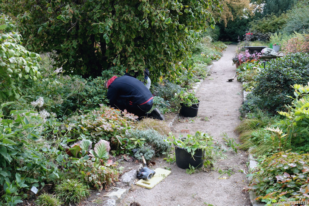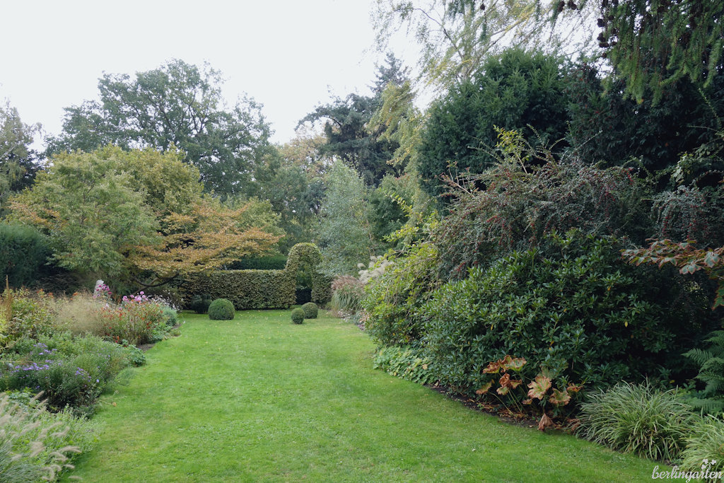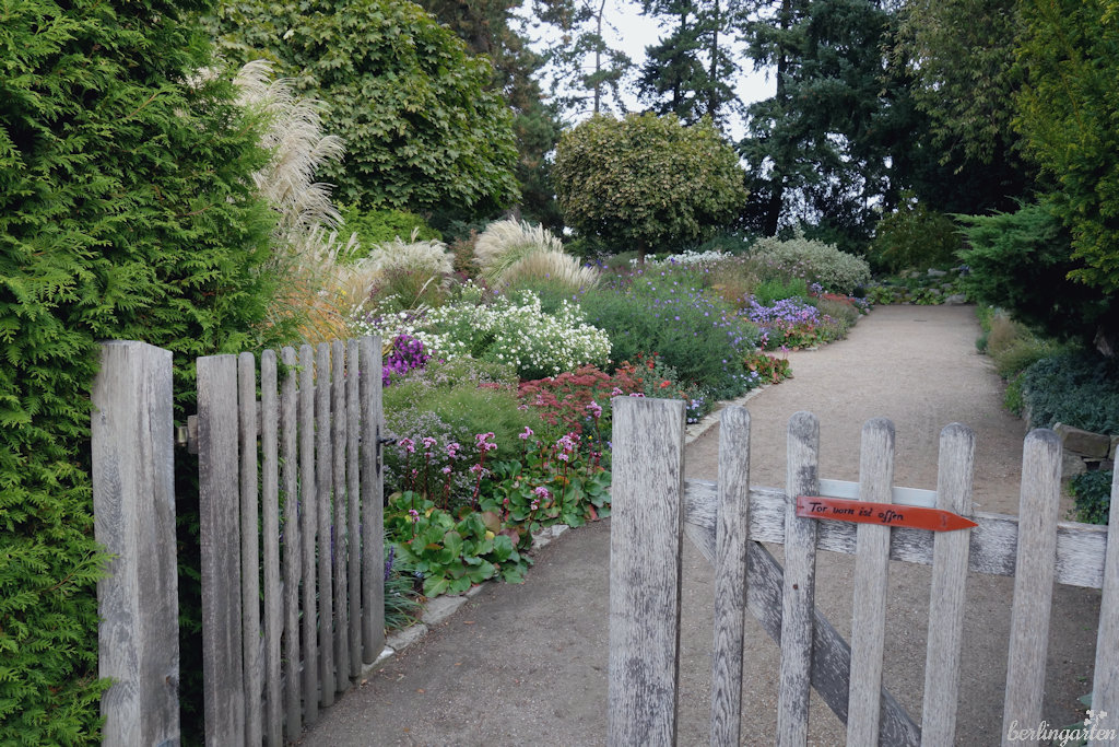 Bei 300 Gehölzen, 200 Blumenzwiebelsorten (3.000 Zwiebeln blühen im Frühjahr allein im Senkgarten) und 1.000 verschiedenen Stauden gibt es Anschauungsmaterial en masse. Wie war das mit dem Astern-Ratschlag der Freundin? Ich bewundere in Potsdam die Zusammenstellung ‚Rubinschatz‘, ‚Andenken an Paul Gerber‘, sowie ‚Lovely‘. Vor dem Astern-Chrysanthemen-Beet möchte man niederknien vor Entzücken.