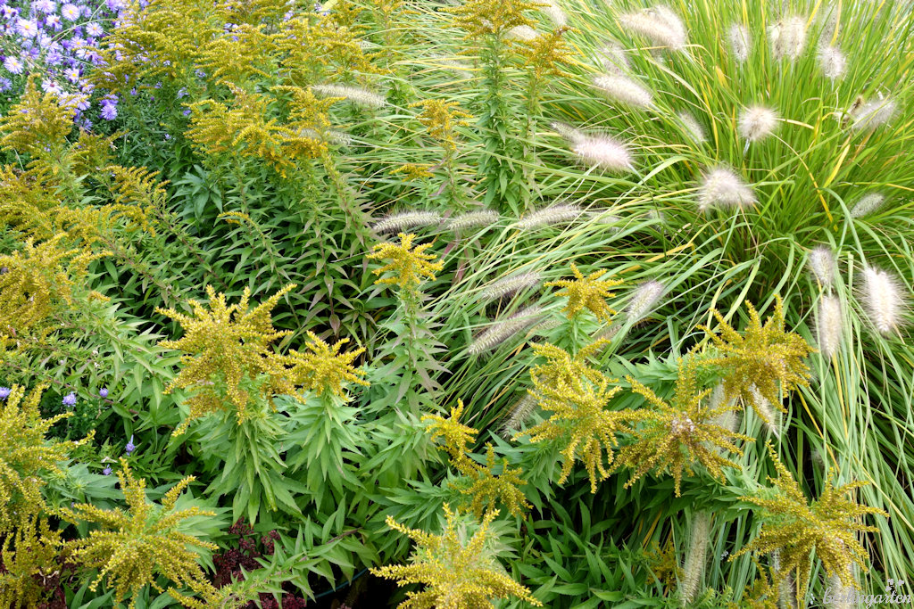 - Ich mag Zuchtformen der Goldrute. Dies ist die nicht wuchernde (!) Sorte ‚Spätgold‘