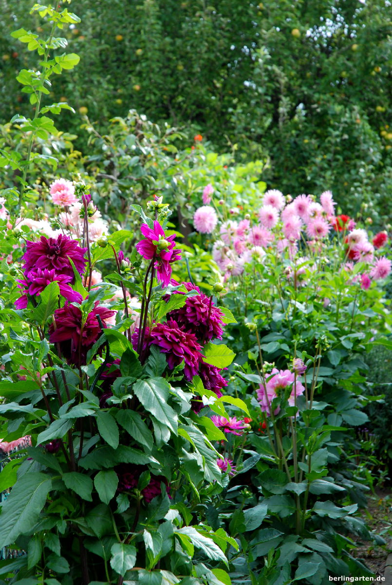 Bei diesen Fotos kommt bei mir auch gleich ein haben-wollen-Gefühl. Wegen der Schnecken habe ich Dahlien (wie auch die meisten meiner Funkien) bisher in Töpfen auf dem Balkon gezogen, wohl wissend, dass die schwelgerische Großzügigkeit der Dahlien besonders schön in Gruppen (also im Beet) zur Geltung kommt … seufz …
