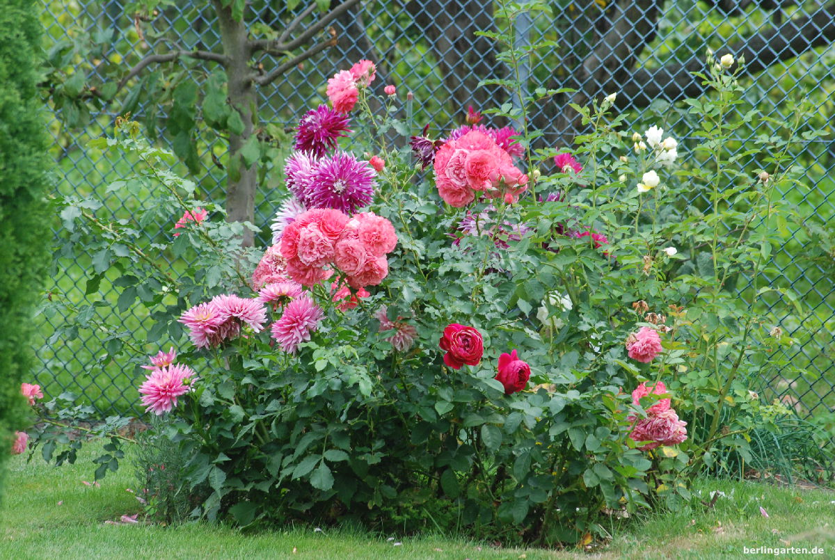 - Eine Nummer kleiner geht auch – hier Dahlie und Beetrose