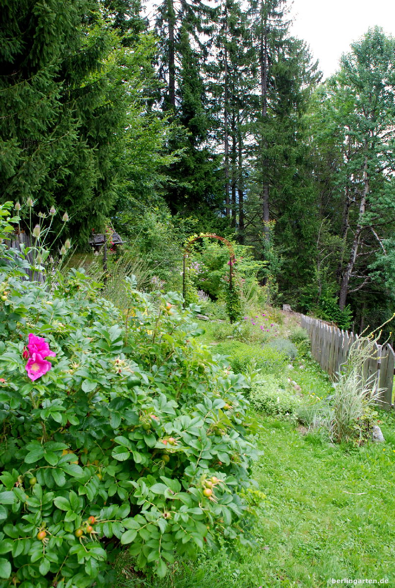 Ich weiß nicht recht – ich denke, es wären eher die Besucher meines Gartens dazu berufen, diese Frage zu beantworten. Ich könnte mir vorstellen, dass mein Garten schon Ausdruck dafür ist, dass ich anders bin. Als studierte Ökologin, die’s aus Wien hierher verschlagen hat, steht mein Garten nicht in der Tradition der alten Bauern- oder Heilpflanzengärten. Er ist angepasst an Standort und die natürlichen Gegebenheiten. Es gab keine Erdbewegungen oder baulichen Maßnahmen, der Garten ist gewachsen. Die Natur hat nach wie vor ein Wörtchen mitzureden bei der Gestaltung und Pflege. Für mich ist es spannend zu beobachten, wie sich Pflanzen über die Jahre selbst die Plätze suchen, an denen sie wachsen wollen. Läuse auf den Rosen, Raupen auf der Berberitze, das darf sein und bis jetzt hat sich all das wieder selbst reguliert. Ich hoffe, mein Garten ist Ausdruck dessen, dass es nicht gilt, die Natur zu bezwingen, sondern ihre Co-Gestalterin sein zu dürfen.