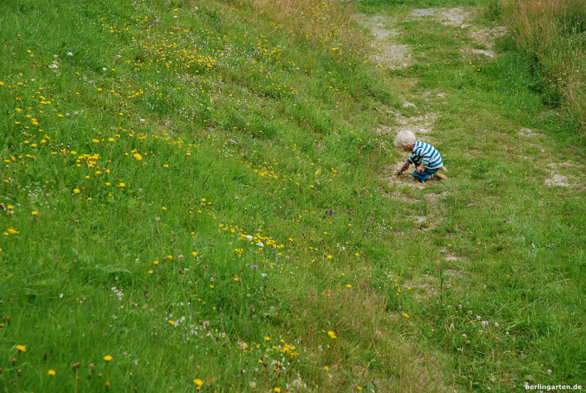 - Während die Mutter bei der Kräuterführung mitmacht, bieten die schönen Wiesen genügend Anregung für den Sohnemann