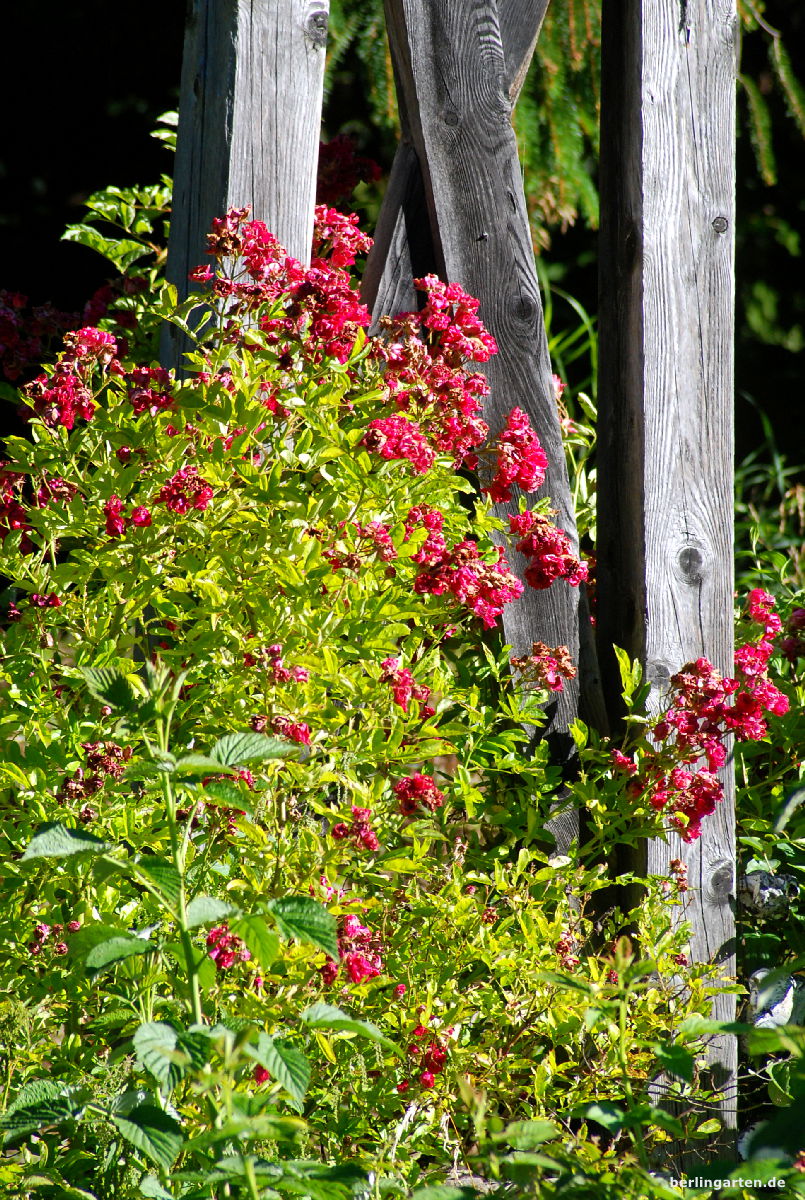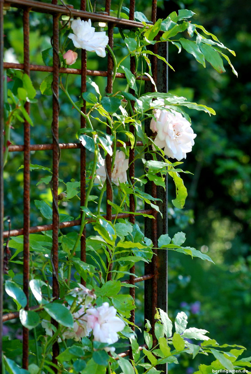 - Aus schlichten Materialien wurde ein Rosenbogen gefertigt