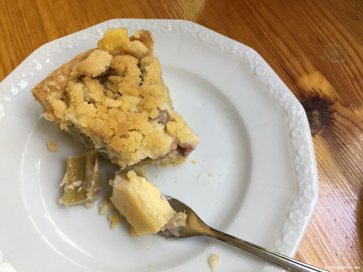 Zum Johannistag: Rhabarberkuchen mit Vanillepudding frisch aus Beet und Ofen