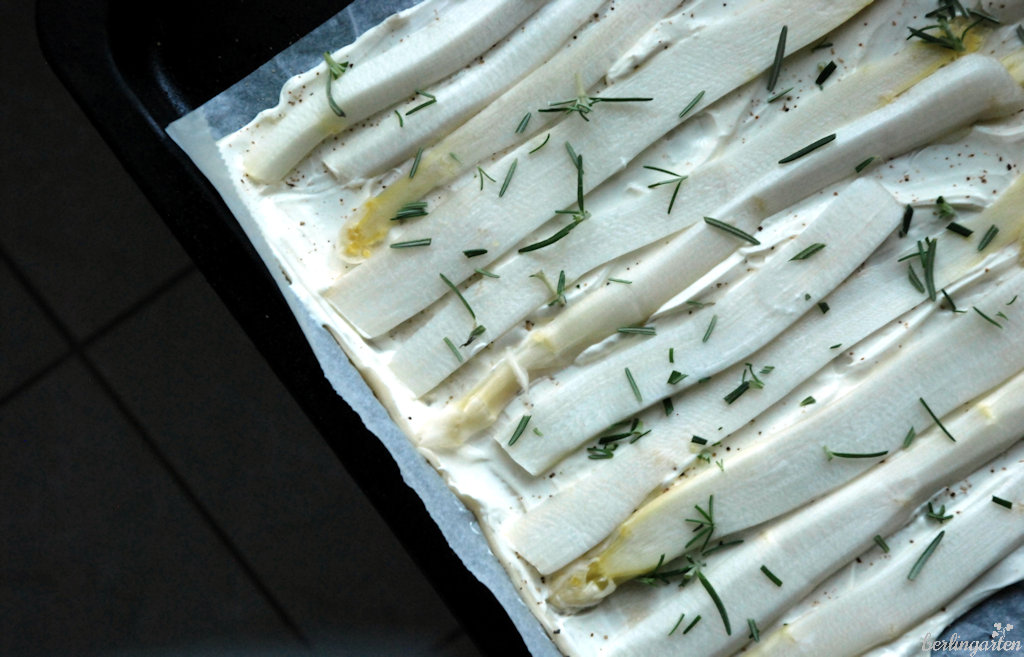 - Rosmarin über den Spargel schnibbeln.